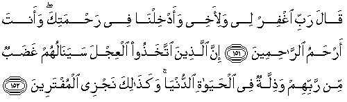 | 154.Musa kabaran öfkesi (gazabı) yatışınca Levhaları aldı. (Onlardan bir) Nüshasında "Rablerinden korkanlar için bir hidayet ve bir rahmet vardır" (yazılıydı). | ![]() |