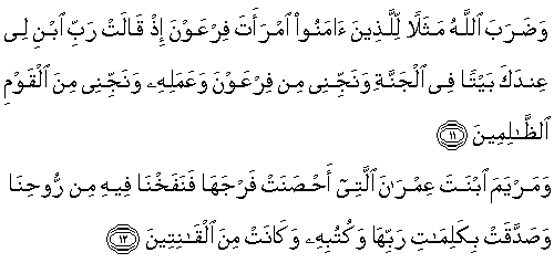 iman edenlere de Firavun'un karısını örnek verdi. Hani demişti ki: