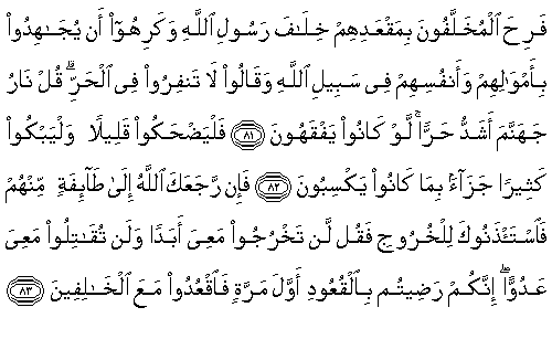 81- Allah'ın elçisine muhalif olarak (savaştan) geri kalanlar
